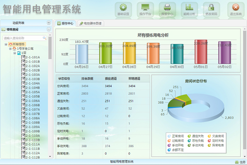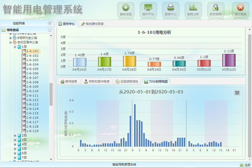 系統實現樓幢、房間免費電量使用周期統計分析;